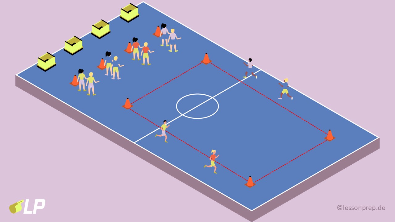 • Se marca un circuito de carrera (por ejemplo, alrededor del gimnasio o del círculo central).