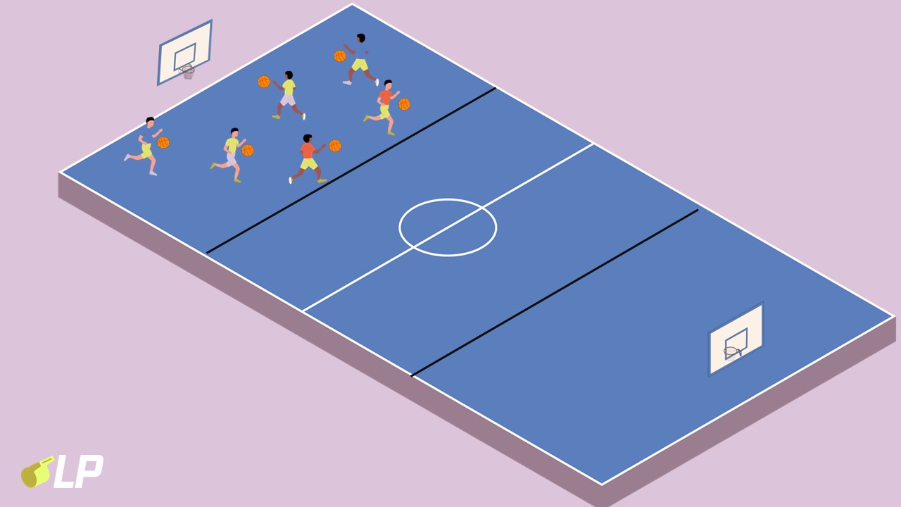 • 5vs5 en todo el campo con un cajón pequeño cerca de la canasta