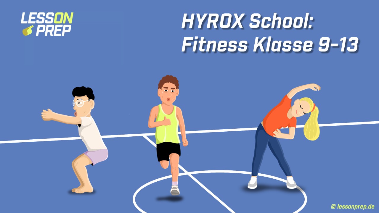 Diese zehn Einheiten (45′ und 90′) umfassende Unterrichtsreihe bereitet die Schülerinnen und Schüler auf eine erfolgreiche Teilnahme des HYROX School Fitnessrennens vor. Es werden neben technisch-koordinativer Fähigkeiten bestimmter Fitnessübungen auch Grundlagen und Möglichkeiten der Trainingssteuerung erarbeitet.