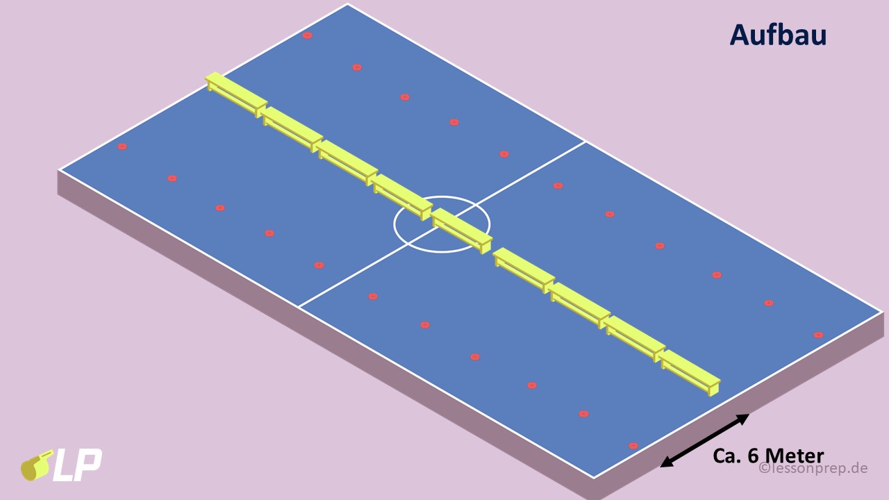 - Feldende mit Hütchen markieren (ca. 6m pro Feldhälfte).