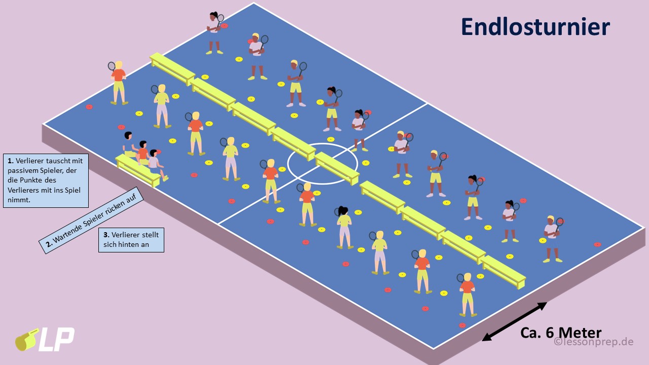 - Beispiel: Gibt es auf einem Spielfeld einen Gewinner/eine Gewinnerin, wechseln beide aus und 2 inaktive SuS spielen auf dem Feld.