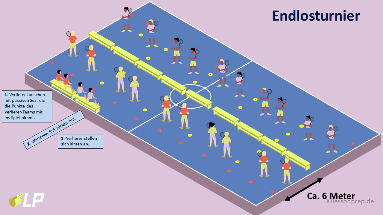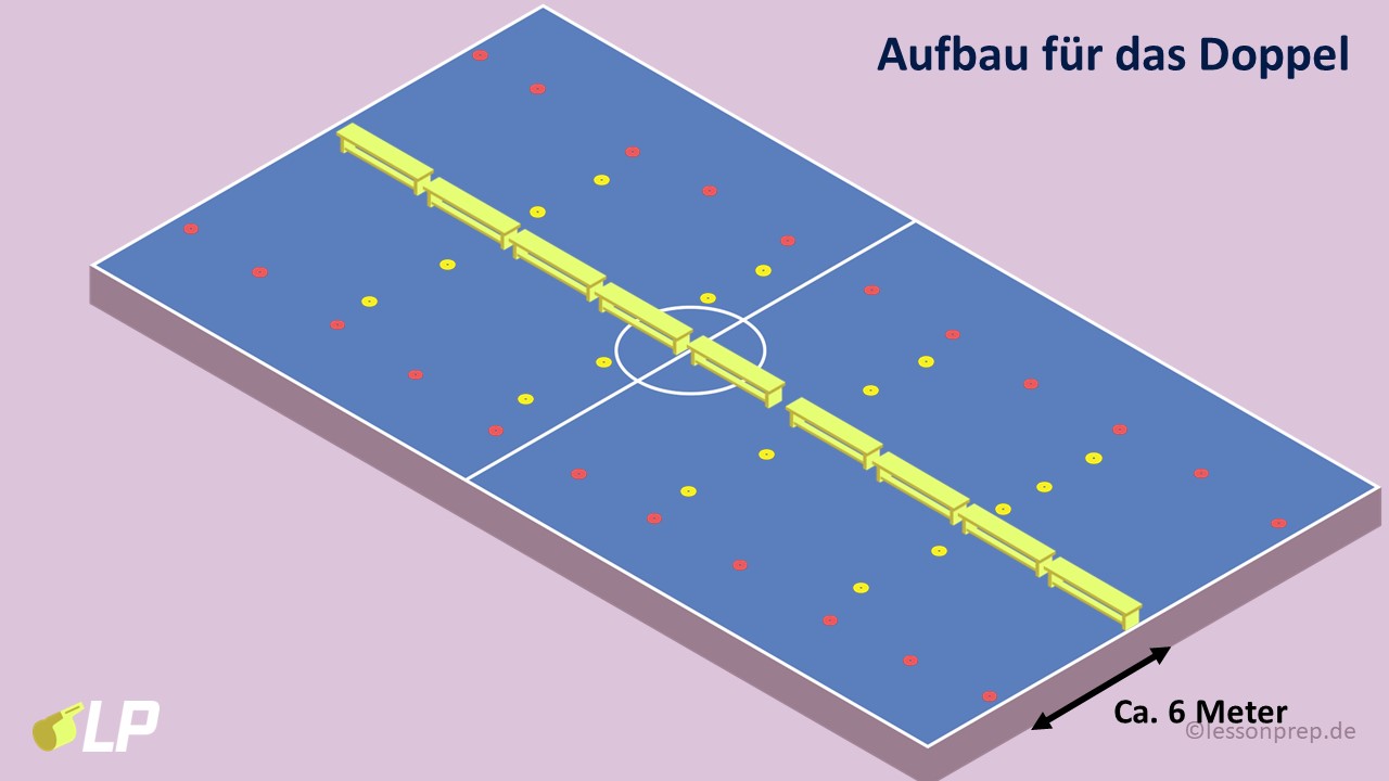 Die SuS spielen das Speckbrett-Doppel und erproben erste Absprachen innerhalb eines 2er-Teams.