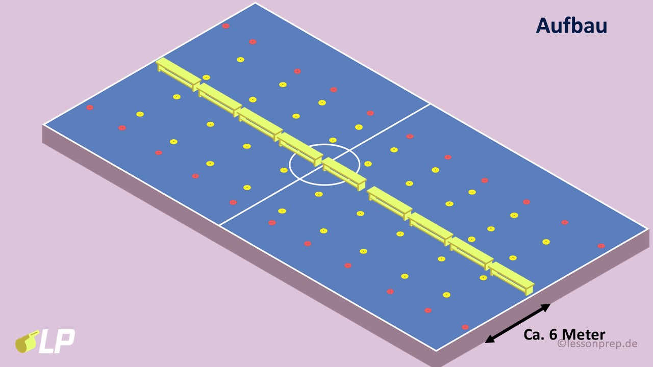 - Lehrkraft und inaktive SuS bauen in der Zeit die Felder auf.