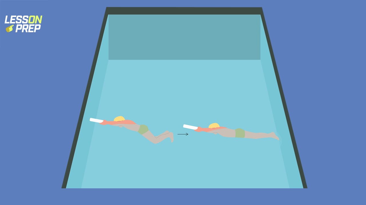 - Die SuS stoßen sich mit den Füßen ab und gleiten mit dem Brett in Vorhalte so weit wie möglich (Kopf möglichst zwischen den Armen, Gesicht im Wasser).