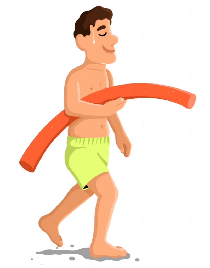 - Die folgenden Übungen sollten zur einfacheren “Anbringung” der Poolnudeln im Nichtschwimmerbecken durchgeführt werden. Falls dieses besetzt ist, kann man die Übungen auch im Schwimmerbecken ausprobieren.