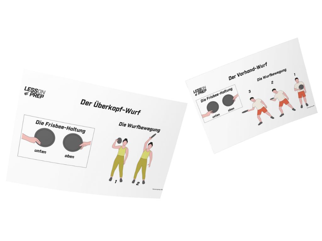 Die Technikkarten können im Unterricht bei der Erprobung der Wurftechniken ausgehändigt werden, sodass die SuS sich gegenseitig ein Technik-Feedback geben können und jederzeit die Handhaltung der Scheibe kontrollieren können.
